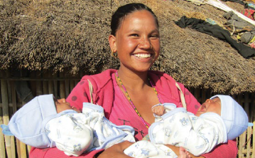 The very next day, I received a call from our Parbati informing me that I could now get an ultrasound at our local birthing center. Parbati scanned my big belly, and confirmed that I was pregnant with twins. I was so touched that I had goosebumps when she showed me the tab and pointed to show me my babies’ hearts pumping. After a few follow-ups, the babies still lay intersecting each other. I am grateful that the SBA referred me to a higher-level center in Kathmandu, where I had a C-section and successfully delivered two baby girls. Thanks for making my life easier and safer.”